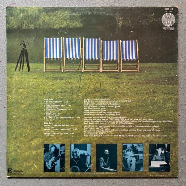 Handsome first UK copy of Ian Carr's 1974 jazzfunk killer 'Under the Sun' with the illustrious Nucleus outfit. Record VG+, sleeve as good as VG+. Plays great throughout.