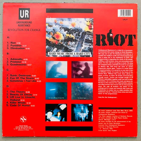 Almost near mint copy of this hard to find Underground Resistance double album from 1992 that was solely released on the UK Network imprint and featured tracks from the Detroit innovators' early years along with unreleased material. Early nineties Detroit techno in its rawest form. Almost VG+ sleeve is a bit rough around the edges, but so is UR.