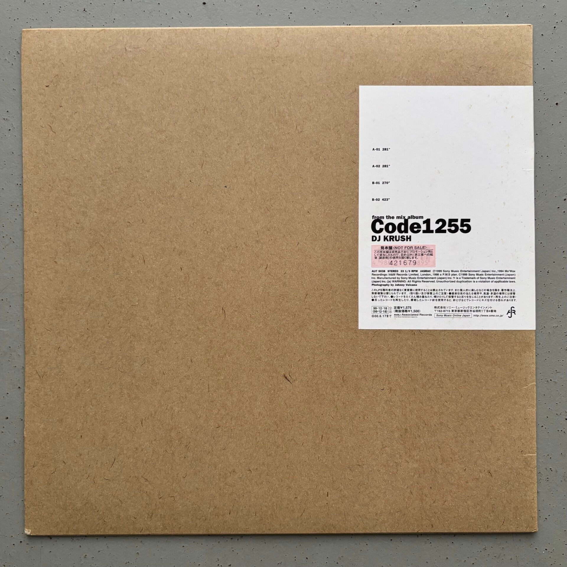 Signed copy of DJ Krush’s 1999 Japan-only Code 1255 advance EP, signed by the maestro in black marker, complete with insert. Record and sleeve VG+.