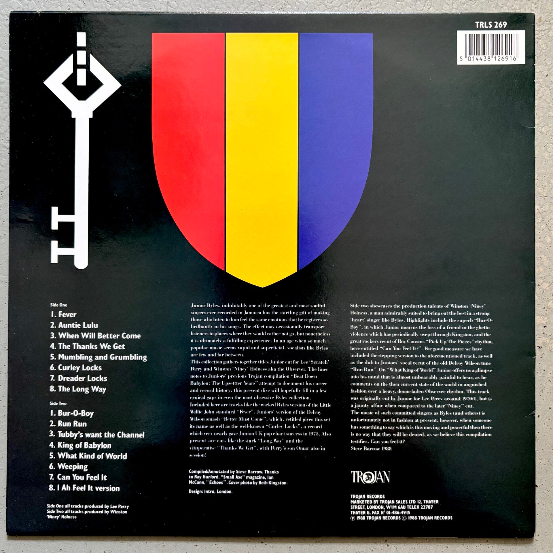 Almost near mint copy of Trojan Records' fantastic 1988 Junior Byles compilation 'When Will Better Come', that consists of 8 Lee 'Scratch' Perry productions on the A-side and 8 Winston 'Niney' Holness-produced winners on side B. Great stuff throughout.