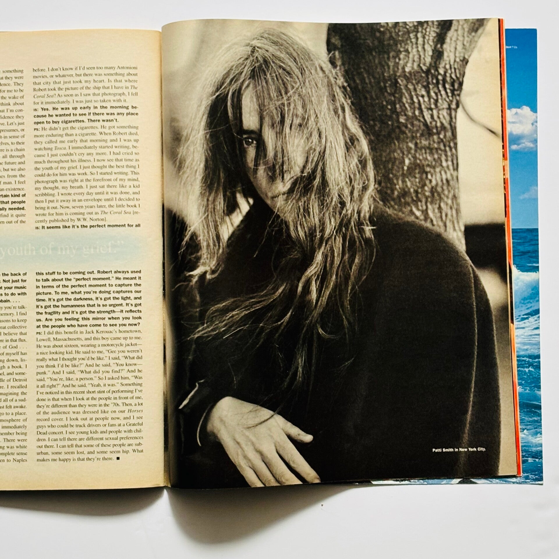 Handsome copy of the June 1996 issue of Andy Warhol’s Interview with Patti Smith cover by Robert Mapplethorpe. Lovely shape. Cover 6.5/10, contents 7.5/10.