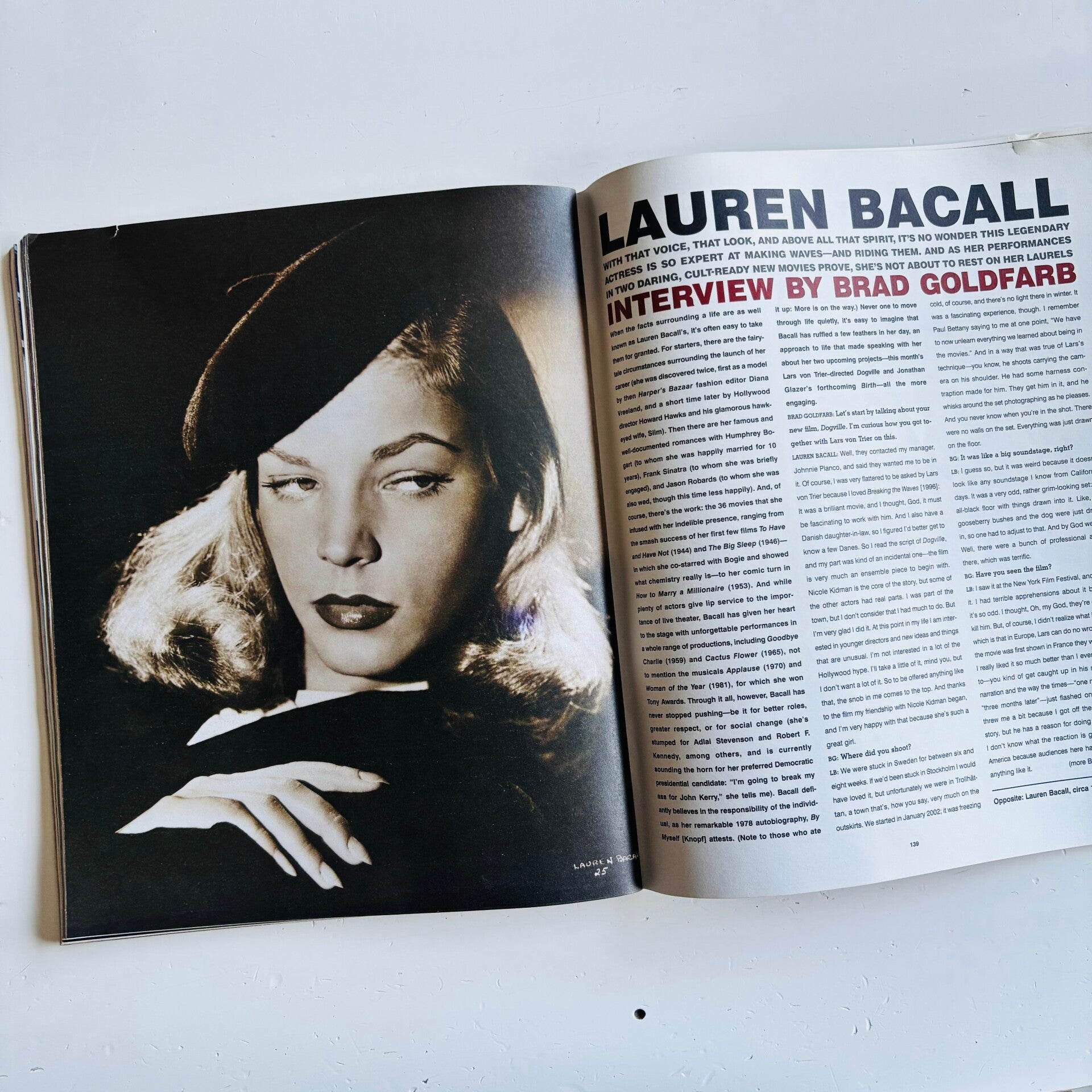 Awesome April 2004 edition of Interview Magazine in great shape. Courtney Love cover and features on Rufus Wainwright, Lauren Bacall and a Vegas photo documentary by Albert Watson. Cover and contents 7.8/10.